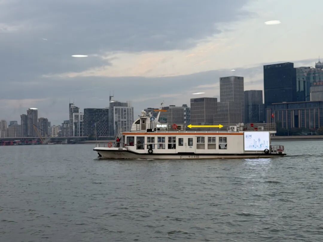 起11月18日,作为非机动车过江的一项补充性通行保障,一条连接北岸城市阳台与南岸奥体中心的水上通道开启。